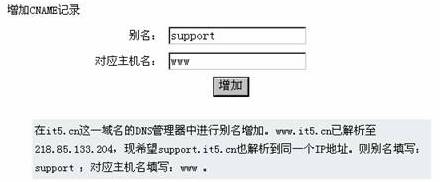 *增加别名:即域名指向操作,将一个域名指向到另一个域名所解析到的IP地址,其操作结果类似于域名解析;